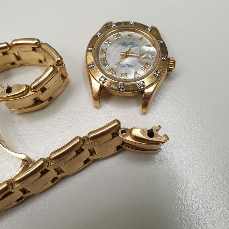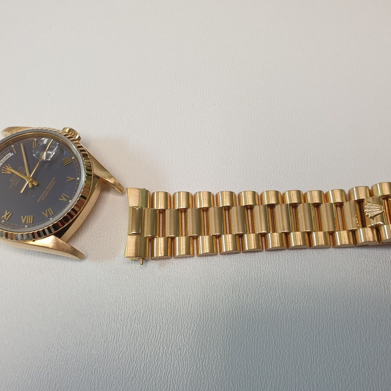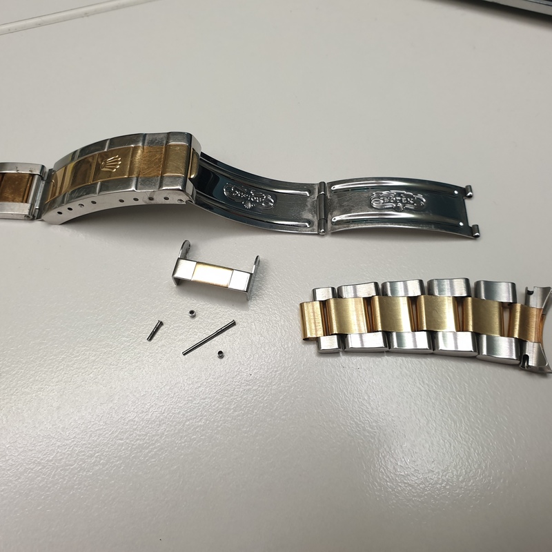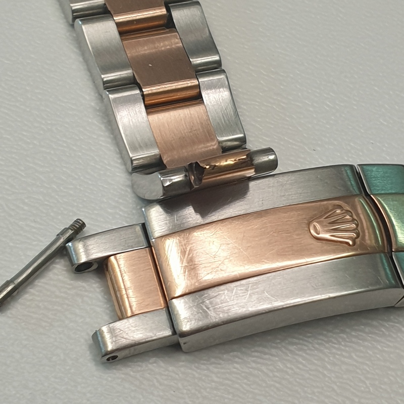 Das sportlichste und populärste Armband des Uhrenherstellers Rolex wurde in den späten 1930er Jahren eingeführt. Während es früher überwiegend bei den Sportmodellen (Daytona, Submariner, GMT-Master) Verwendung fand, ist es heute bei allen Rolex Uhren zu finden. Es ist sogar für die Day Date, Datejust und Sky-Dweller zu bekommen. Die einzelnen Armbandglieder sind aus drei Elementen montiert. Das mittlere Stück ist in etwa doppelt so breit wie die äußeren Bereiche. Das Oyster-Armband gibt es in verschiedenen Materialien. Bei einer Rolex Armband Restaurierung müssen bei diesem Oyster-Armband die innenliegenden Stifte aufgelasert und die mittleren Elemente der einzelnen Glieder restauriert werden.