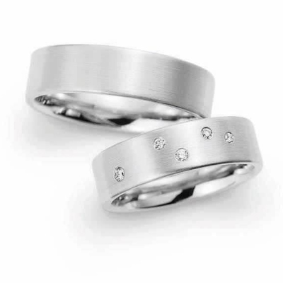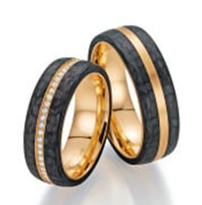 Traditionell und am häufigsten wird für Eheringe Gelbgold verwendet. Um die Härte zu steigern oder den Preis zu senken, kommen verschiedene Feingehalte zur Anwendung. Ebenso wird für Trauringe gerne Weißgold gekauft. Hierbei handelt es sich um gleichwertige Gelbgoldlegierungen, bei denen ein gewisser Palladiumanteil zur Herstellung der weißen Farbe hinzugefügt wurde. Roségold ist eine sehr romantische Farbe für einen Hochzeitsring. Hier wird der Goldlegierung bei gleichem Feingehalt ein wenig mehr Kupfer hinzugefügt, um einen pink-, rosafarbenen oder roten Farbton zu bekommen. Platin stellt für Trauringe ein ausgezeichnetes Material dar aufgrund seiner Härte, des geringen Vorkommens und seiner besonders schönen Erscheinung. Palladium ist mittlerweile ebenfalls beliebt als Material für Trauringe. Es ist strapazierfähiger als Weißgold und weniger zäh als Platin. Sein weißes Aussehen und die Tatsache, dass keine Beschichtung benötigt wird, macht es ideal für diejenigen, die einen wartungsarmen Ring mögen, ohne in den höheren Preis des Platins zu investieren. Traditionell war auch Silber ein typisches Trauringmaterial. Allerdings ist es heute nicht mehr so populär, da es weicher und somit kratzempfindlicher ist als andere Edelmetalle, zudem oxidiert es mit Schwefel. Ein Pro-Argument ist auf jeden Fall der vergleichsweise niedrige Preis.