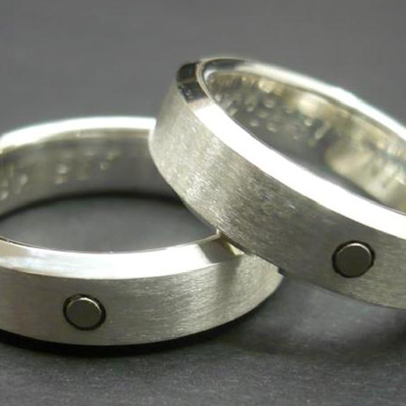 Als Symbol für die Liebe muss es nicht immer unbedingt ein Diamant sein. Anstatt des Edelsteins können in den Silberringen Magnete gegenpolig gefasst werden, sodass sie sich gegenseitig anziehen – genauso wie in Ihrer Partnerschaft.
